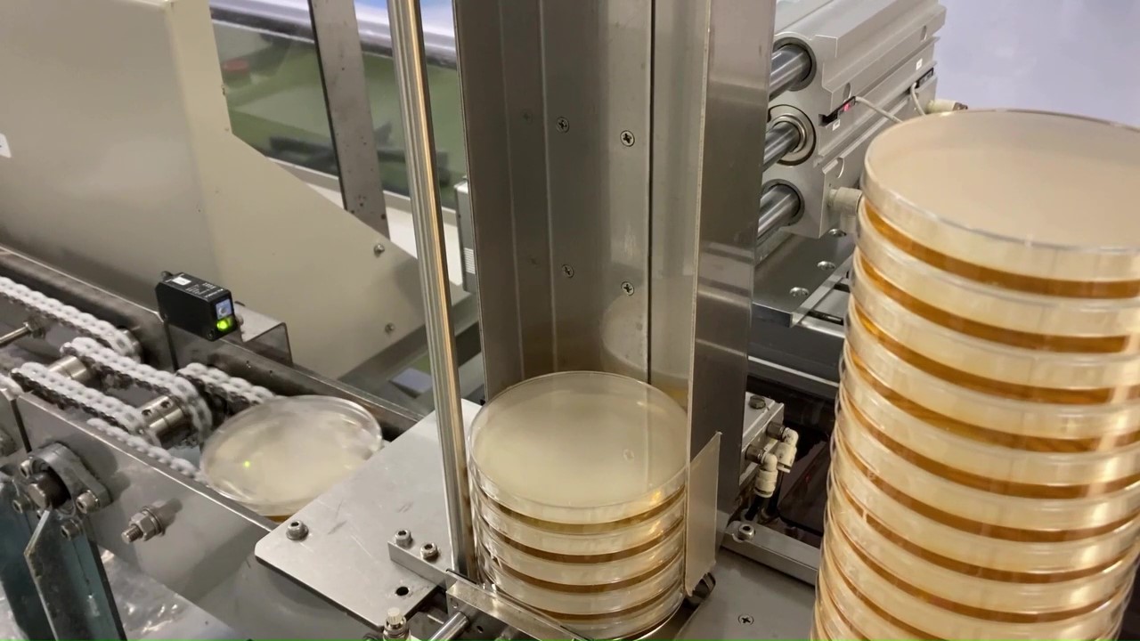 - スタンプ培地自動充填機では、毎時2,000枚の製造が可能です。