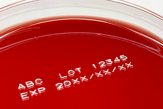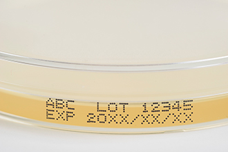 レーザー刻印、またはインクジェットにて、製品名、LOT、有効期限などを印字できます。シャーレ単体での識別が可能となります。